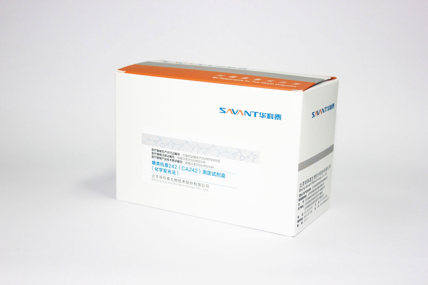 This kit is used for quantitative detection of carbohydrate antigen 242 (CA242) in human serum in vitro. CA242 is a sialylated carbohydrate antigen, which can be recognized by CA242 monoclonal antibody. It is a kind of glycoprotein of mucin type, which is very low in the serum of healthy people and patients with benign diseases. When malignant tumors occur in the digestive tract, the serum CA242 usually increases. For example, with 17u / ml as the positive value, 86.2% and 62% of pancreatic cancer, colorectal cancer and rectal cancer were detected, respectively. The false positive rate of normal people was 4%. The reagent is mainly used for the diagnosis and detection of pancreatic cancer, colorectal cancer and rectal cancer. It also has a certain positive detection rate for lung cancer, breast cancer, etc.